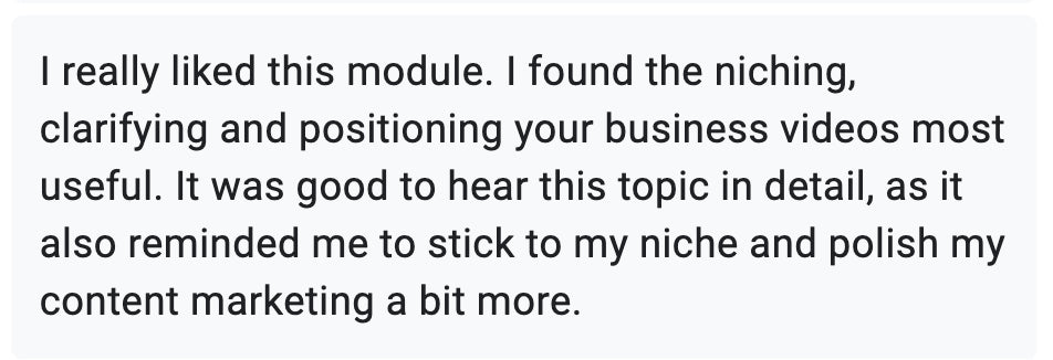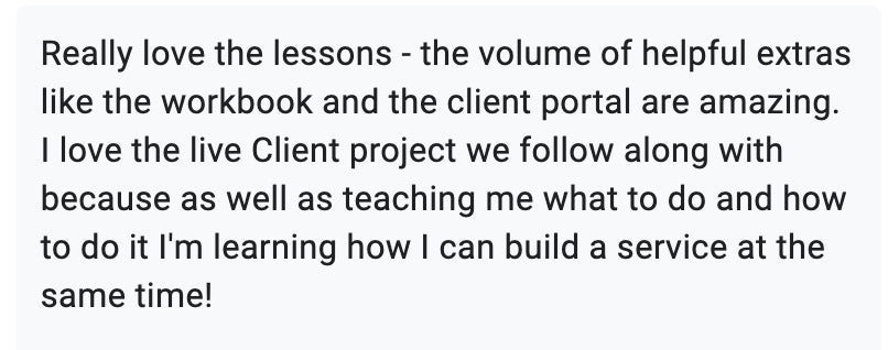 The lessons take around 3 hours and 20 minutes in total. It’s streamlined and designed to get you results fast, without any fluff.